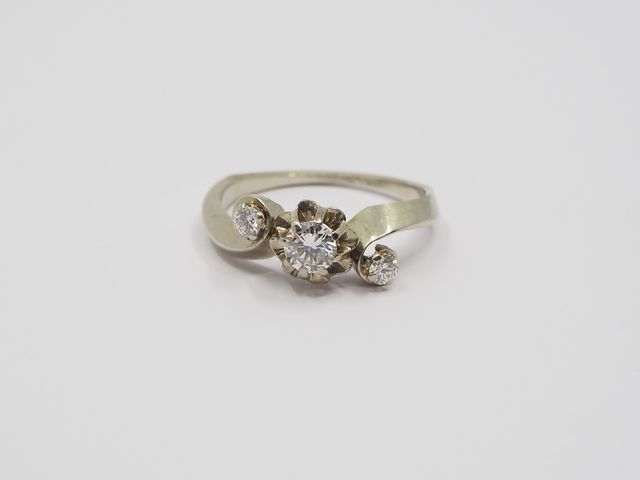 Bague en or gris sertie de trois diamants de taille moderne Pds