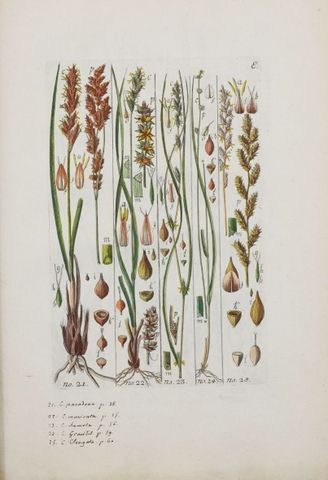 SCHKUHR (Chrétien). Histoire des Carex ou Laiches contenant la description et les figures coloriées de toutes les espèces connues et d'un grand nombre d'espèces nouvelles. Traduite de l’allemand et augmentée par G. F. Delavigne. Leipzig, Voss et Compagnie, 1802.