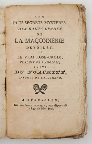 Franc-maçonnerie - [BÉRAGE]. Les plus secrets mystères des hauts grades de la Maçonnerie dévoilés ou Le Vrai Rose-Croix, traduit de l'anglois, suivi du Noachite, traduit de l'allemand. Jérusalem, sur une haute montagne, aux dépens de la loge de Saint Jean, s. d..