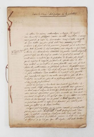 [BARBOT DU PLESSIS (Denis-Charles)]. Etude de l'Essai philosophique sur les probabilités [de Laplace]. [MANUSCRIT]. Sl, sd (c.1840).