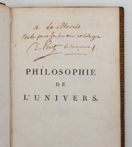 [DUPONT DE NEMOURS (Pierre-Samuel)]. Philosophie de l'univers. Paris, Imprimerie de Du Pont, sd (1796).