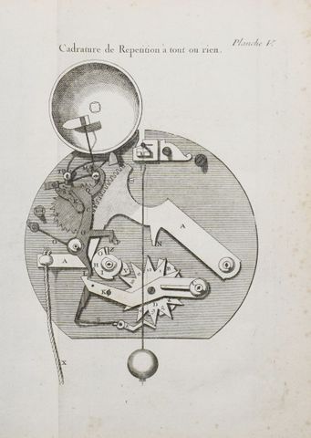 Horlogerie - LEPAUTE (Jean-André). Traité d'horlogerie, contenant tout ce qui est nécessaire pour bien connoître et pour régler les pendules et les montres, la description des pièces d'horlogerie les plus utiles, des répétitions, des équations, des pendules à une roue, &c. celle du nouvel échapement, un traité des engrénages, avec plusieurs tables, & XVII. Planches en taille-douce. Augmenté de la description d'une nouvelle pendule policamératique. Paris, Samson, 1767.