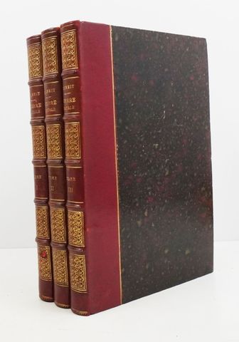 3 vol. grand in-8 (28,5 x 19,5 cm), demi-basane rouge de l'époque, dos à nerfs orné, titre et tomaison dorés, double filet doré sur les plats, tête dorée, couv. illustrées conservées mais interverties aux t. 1 et 3, ex. non rogné.