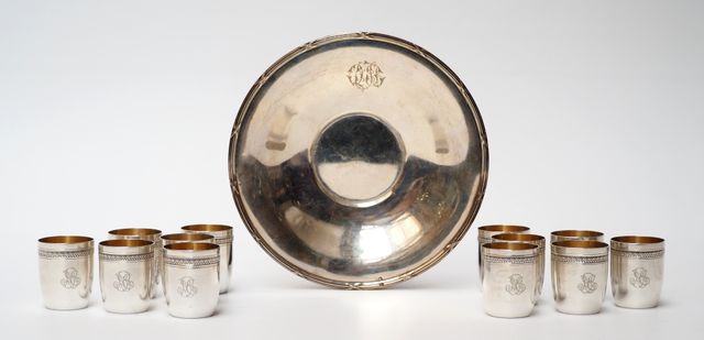 Suite de douze verres à liqueur en argent et intérieur en vermeil...