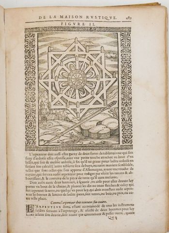 Célèbre traité sur la vie à la campagne au 16e siècle, illustré de figures gravées sur bois in-texte. C'est une véritable encyclopédie de la vie à la campagne contenant de nombreux chapitres sur la chasse, la gastronomie, les jardins, etc. Elle est augmentée du traité de la fabrique de la jauge et de celui sur la chasse au loup de Clamorgan. (Thiébaud 352.) Qqs rousseurs. Mouillures claires sur les premières pages. Mors intérieur cassé.