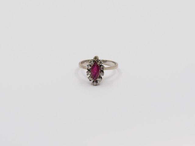 Bague marquise en or gris 750°/°° centrée d'une pierre rose dans ...