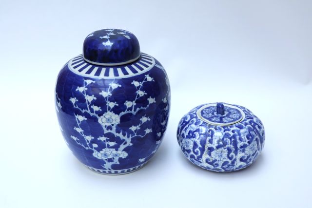 CHINE Potiche couverte en porcelaine émaillée à décor blanc/bleu...