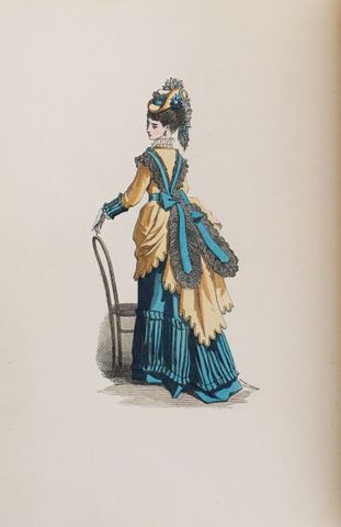 L’ouvrage est illustré de 2 planches hors-texte, lithographiées et coloriées, représentant des costumes féminins d’époque, ainsi que de plusieurs vignettes en noir dans le texte.