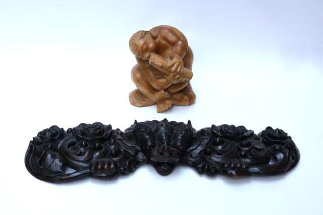 INDONESIE - BALI Sujet en bois sculpté figurant un musicien assi...