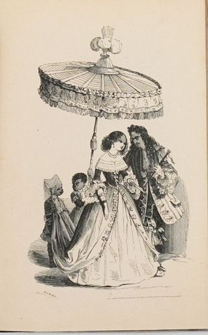 Édition originale peu commune, ornée de 9 vignettes hors texte sous serpentes. L’ouvrage fut rédigé par Charles Marchal (1822-1870) pour le fabricant de parapluies Cazal.
