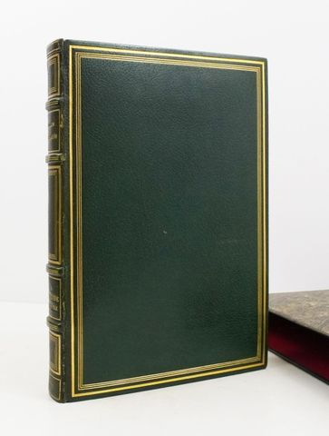 Grand in-4 maroquin vert, dos à nerfs orné, quadruple filet doré encadrant les plats, double filet doré sur les coupes, doublure de maroquin vert clair avec motifs dorés en encadrement, tranches dorées, couv. conservées, sous étui (Noulhac).