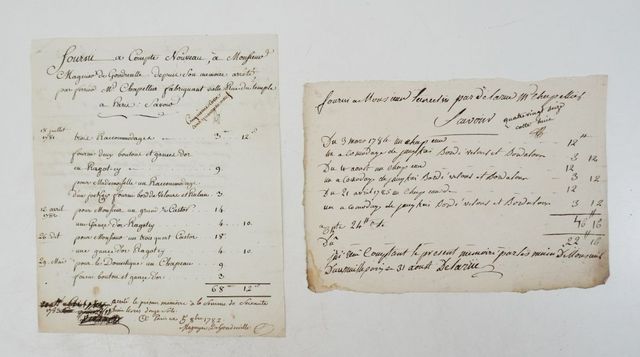 [Chapeaux]. Deux factures de chapeliers. Fin du XVIIIe siècle. 2 ...