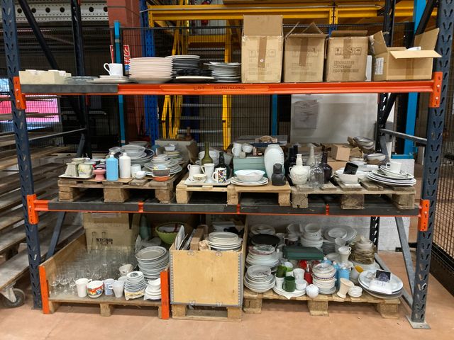 Important lot de verres et vaisselle dépareillés (sans le rack)
