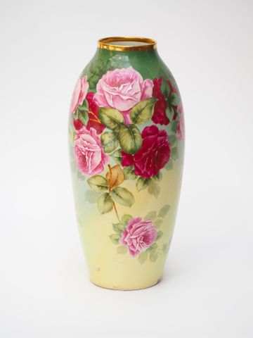 LIMOGES (attribué à) Vase oblong en porcelaine dure émaillée à dé...