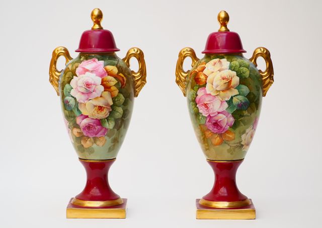 LIMOGES - M. GANDOIS Paire de vases couverts en porcelaine dure é...