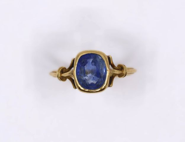 Bague en or jaune 750°/°° ornée d'un saphir TDD 53 Pds brut 2,77 ...