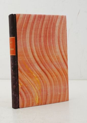 Petit in-12 (142 x 94 mm), 100 pp. Bradel de papier brun à croisillons, plats de papier à motifs ondulés dans les tons rose, orange et jaune, pièce de titre en chagrin orange, non rogné, couverture et dos conservés (V. Fonlupt).