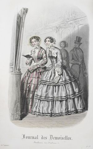 - JOURNAL DES DAMES ET DES DEMOISELLES et Brodeuse illustrée réunis, 1865-1866, 12 gravures de modes en couleurs (+ qqs planches en noir).