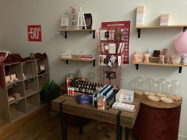 Stock comprenant : livres, cartes postales, bougies, un lot de bo...
