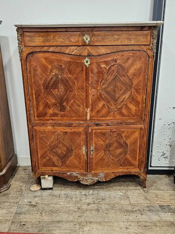 Secrétaire en bois de placage et marqueterie ouvrant par un abatt...