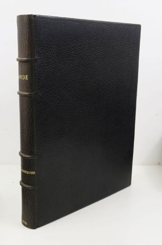 In-4 maroquin noir janséniste, dos à nerfs, titre doré, filets dorés sur les coupes, filet d'encadrement intérieur doré, doublures et gardes de soie bleue à décor de vagues, tr. dorées sur témoins, couv. et dos conservés, sous étui à rebords (Jean Lambert).