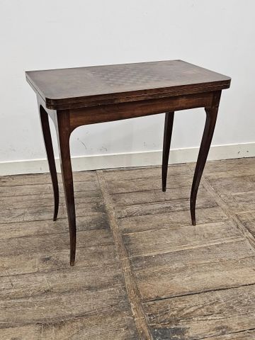 Table à jeu en bois de placage et marqueterie de damier Style Lo...