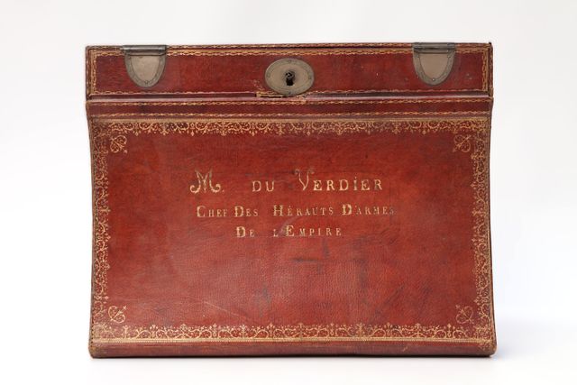 Portefeuille écritoire en maroquin rouge doré au petit fer portan