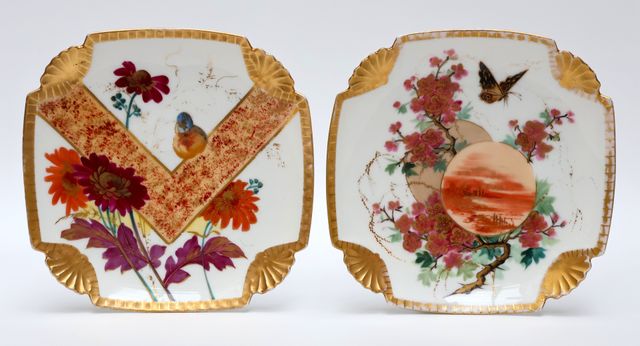 LIMOGES Paire de plats de forme carrée avec coquilles aux angles...