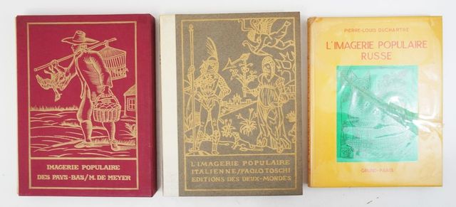 - TOSCHI (Paolo), L'Imagerie populaire italienne du XVe au XXe siècle. Paris, Édition des deux mondes, 1965. Grand in-4 cartonnage demi-vélin illustré de l'éd. Nombr. reproductions en noir et en couleurs. Tirage à 2000 ex. (n° 580).