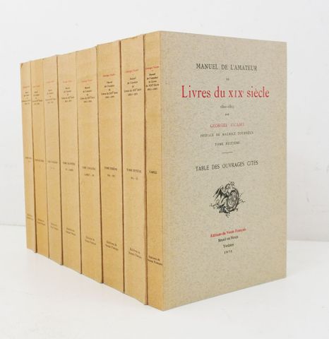 VICAIRE (Georges). Manuel de l'amateur de livres du XIXe siècle 1801--1893 - Éditions originales , ouvrages et périodiques illustrés, romantiques, réimpressions critiques des textes anciens classiques. Bibliothèques et collections diverses. Publications des Sociétés de Bibliophiles de Paris et des départements. Curiosités bibliographies etc., etc. Brueil-en-Vexin, Éditions du Vexin Français, 1974-1975.