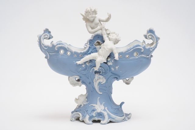 Coupe en biscuit de porcelaine bleu et blanc à décor rocaille, su...