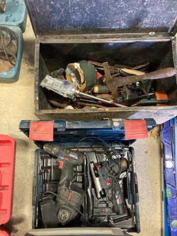 LOT COMPRENANT SCIE SAUTEUSE BOSCH, CAISSE D'OUTILS, 2 NIVEAUX, V...