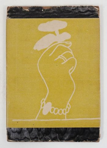 Petit in-4 broché, couverture muette de papier noir recouverte d'une large bande de papier jaune et illustrée d'un bois de James Pitcairn-Knowles.