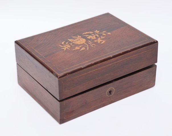 Coffret à senteur en placage de palissandre et marqueterie floral...