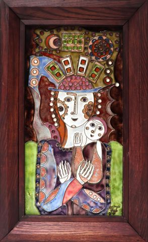 Janos FAJKA (1935) Idill Plaque rectangulaire aux émaux polychr...