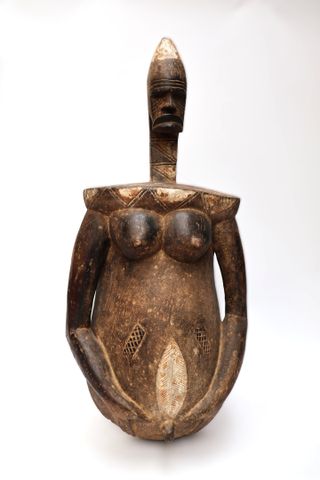 AFRIQUE Sculpture anthropomorphe en bois sculpté et pigments dan