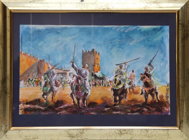 Mohamed M'ZIDABI (Limoges - XXe) Fantasia de cavaliers Techniqu...