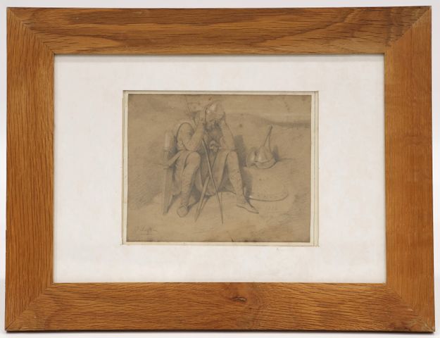 Paul SEIGNAC (1826-1904) Soldat assis Dessin à la mine de plomb