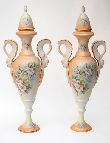 LIMOGES Paire de vases couverts en porcelaine dure émaillée à dé...
