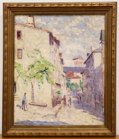 Pierre THOMAS (1865-1930) Rue à Eymoutiers, vers 1910 Huile sur