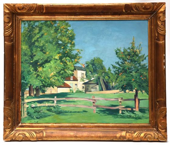 Alfred SMITH (1854-1936) Coin de ferme à Crozant, 1935 Huile su