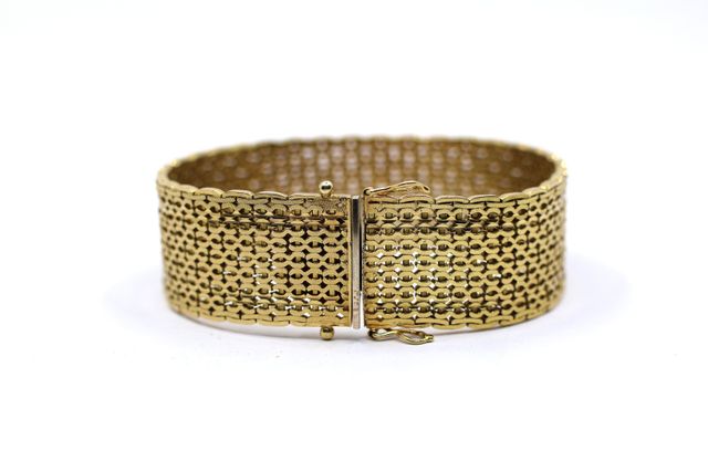 Bracelet ruban à mailles ajourées en or jaune 750°/°° On y join