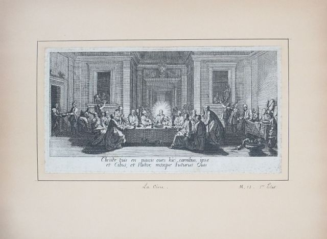 Ensemble de 4 figures gravées sur papier vergé et montées sur planches : La Cène (Meaume 13, 1er état), La Présentation au peuple (M. 16, 1er état à grandes marges et 2e état à marges courtes), Jésus Christ portant sa croix (M. 17, 3e état, marges courtes, restaurations).