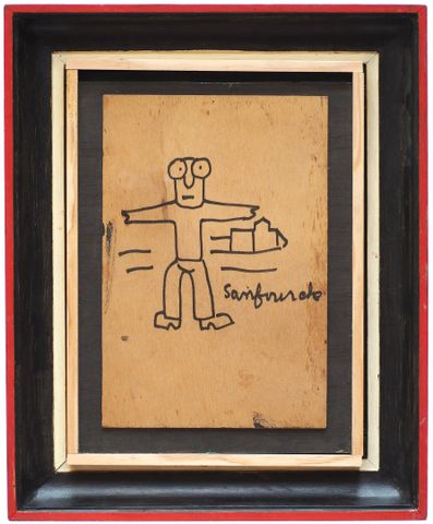 Jean-Joseph SANFOURCHE (1929-2010) Personnage sur fond de village...