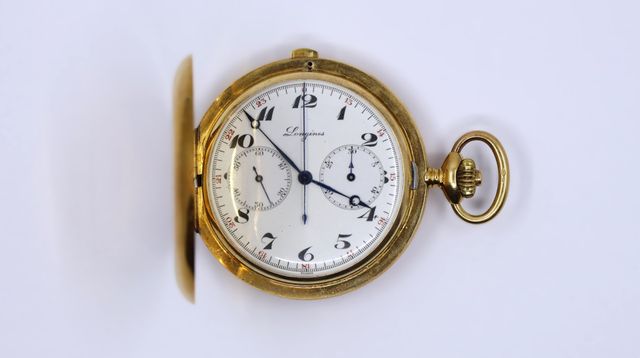 LONGINES Montre savonnette à double boîtier en or jaune 750°/°°, ...