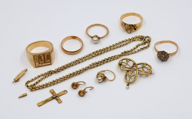 Lot de bijoux dépareillés en or jaune 750°/°° Pds brut 43,39 grs