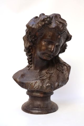 Buste de jeune femme coiffée de raisins en fonte dans l'esprit de...