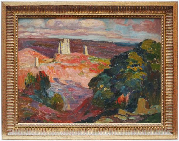 Charles BERJOLE (1884-1924) Ruines de Crozant, 1918 Huile sur pan...