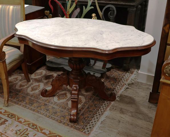 Table de milieu de forme violonée dessus de marbre blanc H.70 cm...