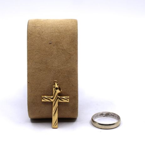 Lot comprenant un pendentif et une alliance en or jaune et or gri